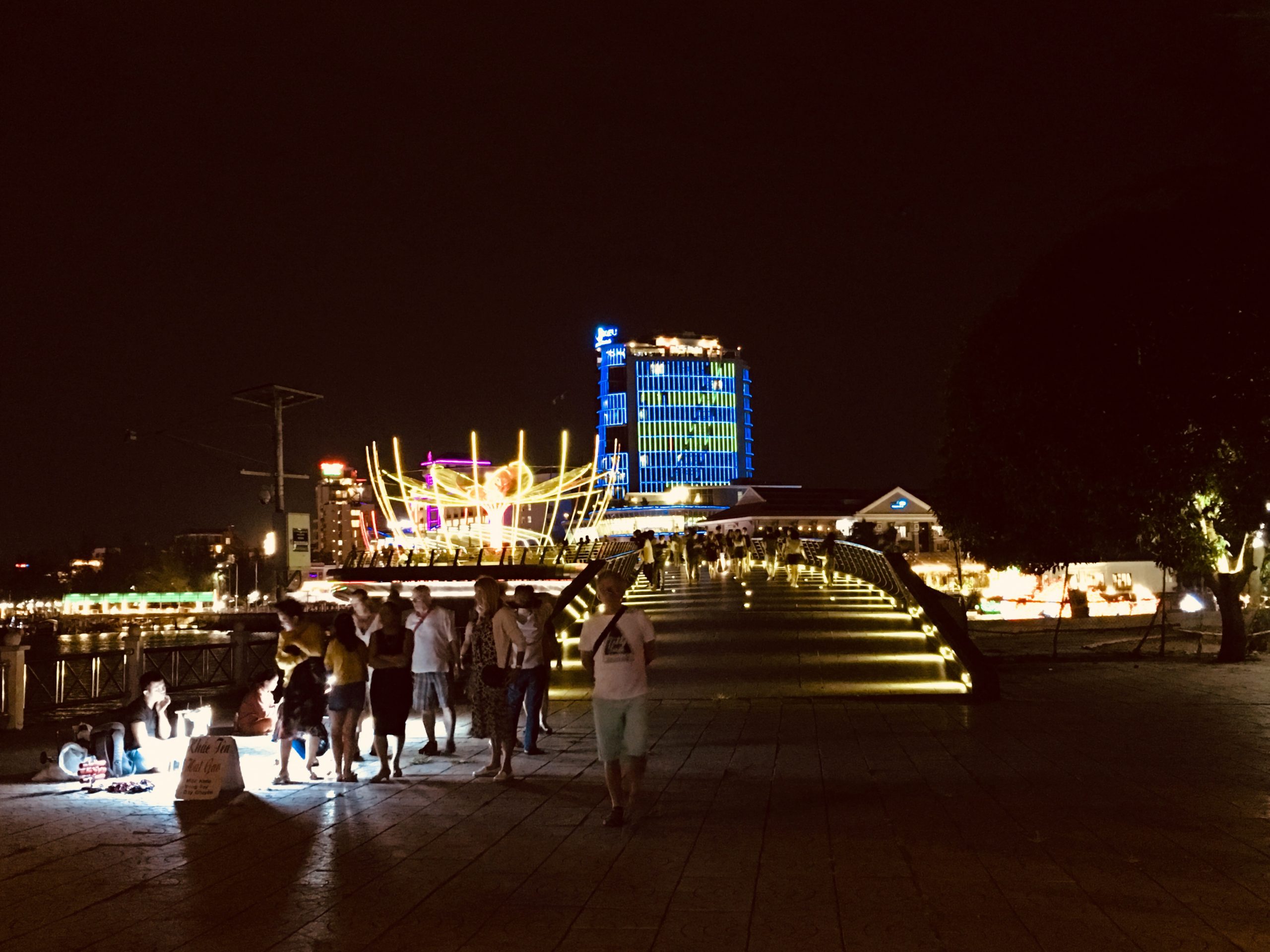 In this city, we noticed that it is not as busy as HCM city. People can walk on the sidewalk, which is good. The architecture is quite different in comparison to HCM city