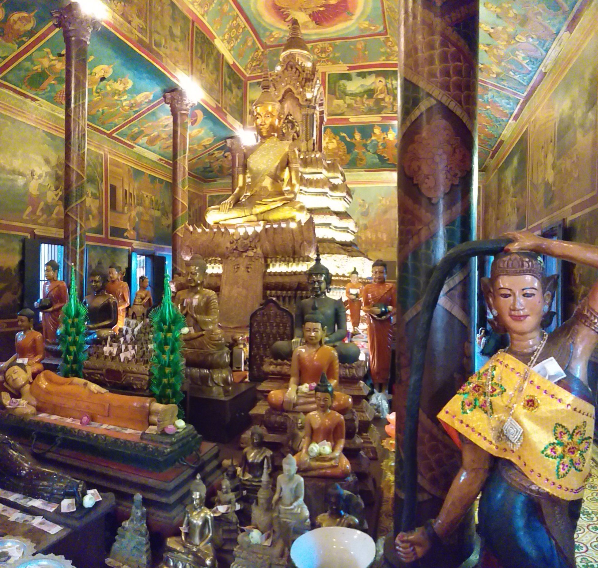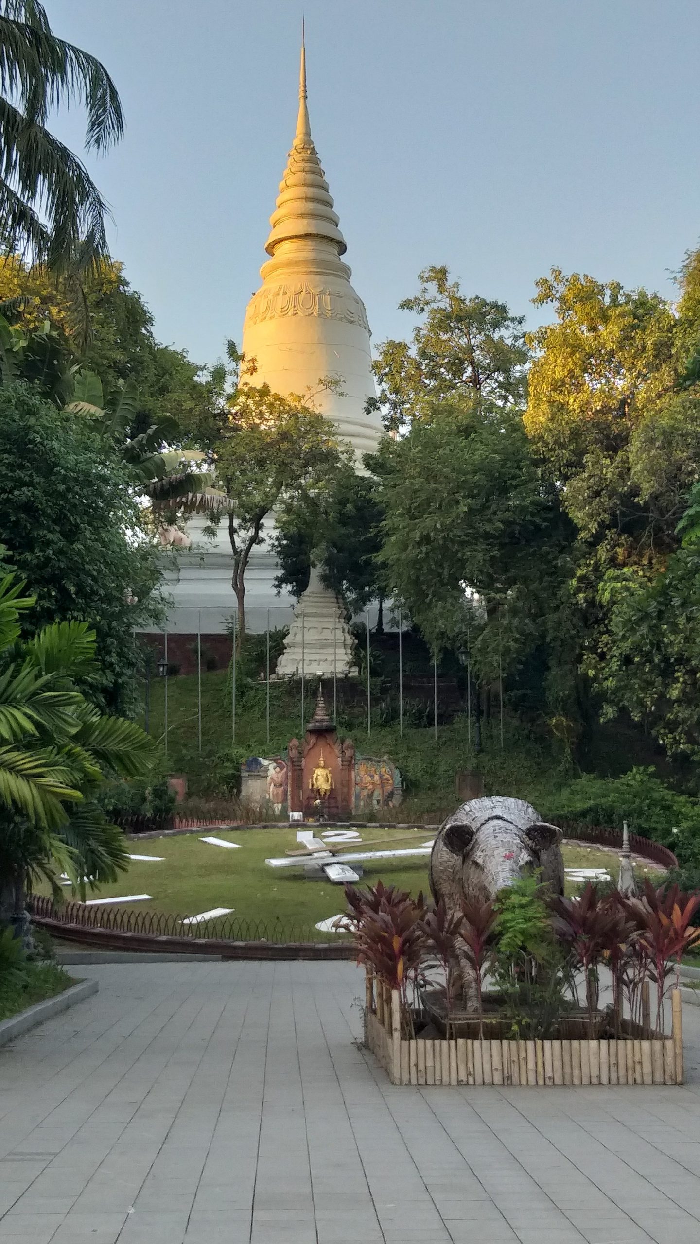 Despues del registro en el hotel, iniciamos el recorrido (breve) buscando donde comprar algo de comida… (Western food). El primer lugar en visitar fue Wet Penh es un templo Budista ubicado en el centro de una glorieta vehicular. El mistico templo se caracteriza por un buda Vajrayana y otras deidades a su alrededor. Los feligreses colocan algunos billetes sobre las esculturas como parte del ritual. De canmino encontramos un Burger king, en donde cenamos.