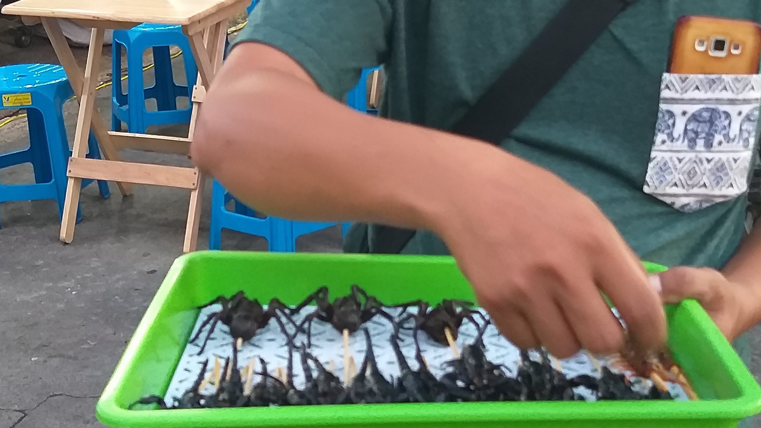 Los snaks mas comunes son insectos! Sip insectos! Arañas y escorpions. Usualmente los consumen para abrir el apetito… vaya que a mi solo me revuelca el estomago.