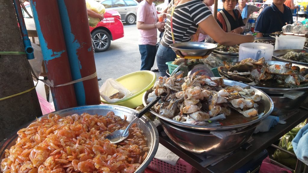 Sobre las 2.00 pm tomamos un tuk tuk con destino a china town. Visitar un barrio chino en un pais no nativo…mmm poco convencional, pero hemos encontrado cosas interesantes en Vietnam y Singapore. El lugar es caotico y acelerado. Parece algo similar al comercio en el centro de Bogota. En las calles nuevamente nos encontramos con comidas extrañas.
