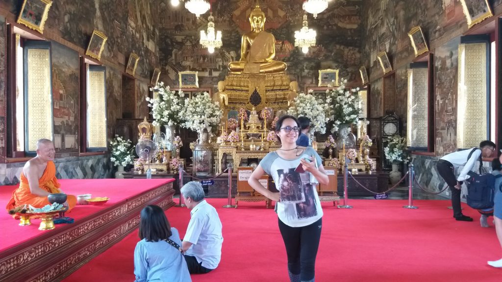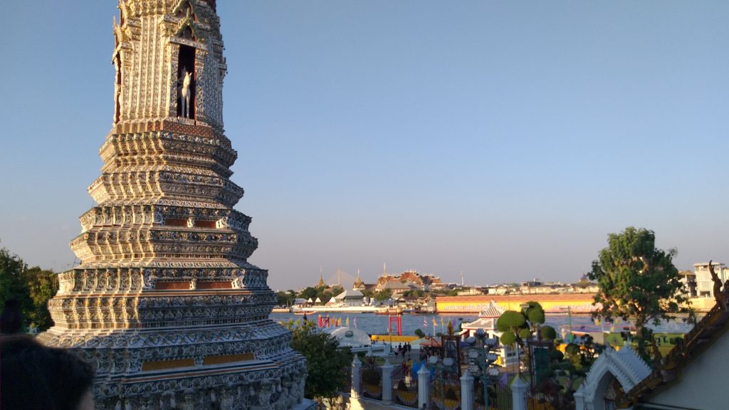 Decidimos tomar el metro con destino a Wat Arun. Un templo budista – hinduista. Colorido y con multiples esculturas. Desde allí podemos observar el palacio real.